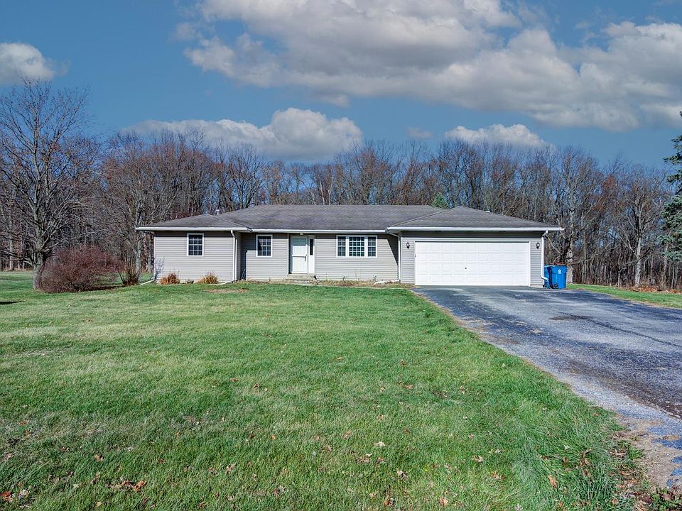 Nestled away in a quiet subdivision in Boone Grove you will find this gorgeous 3 bedroom ranch with new carpet and freshly painted throughout, sitting on a full acre lot! This home has all the space you will need both inside and out. Walk in the front door and you are greeted by a spacious living area with new carpet . Walk towards the back of the home and you will find a spacious open concept kitchen/dining area that has bar sitting and double ovens. The kitchen leads to a 2nd living area with a stone fireplace with heatilator for those cold Indiana nights. This home features a full unfinished basement and a wood burning stove that is vented into the home and is sure to help with those utility bills! The home also features 3 bedrooms on the main level including a main bedroom suite with its own bathroom! Don't forget about all the space outside including a screened porch, above ground pool and fenced in area for a chicken coop! There is so much waiting for you, come check it out!