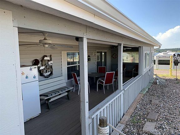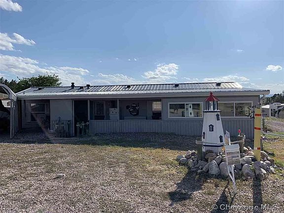 New Metal Roofs and Windows!! This manufactured home is located near the lake edge of the Glendo Marina (Rooch's) with water views. It offers 2 bedrooms, 1 bath, laundry, and nice living/dining/kitchen area. It also offers a covered patio/enclosure great for entertaining or extra space to sprawl out that closes up for winter and opens up for Summer! You also have a carport for your boat or car a nice area for parking and a great grilling area, not to mention a fun replica lighthouse. Amazing Lifestyle...