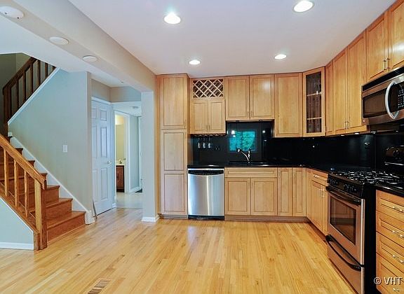 Fabulous remodeled townhome backs to bike path and single family homes. Your dream kitchen with high end everything is open to living and dining rooms. Home has first floor den, sitting room off master bedroom, beautifully remodeled full baths with jetted tub and steam shower. Basement has rec room with wet bar and 3rd bedroom. Hardwood floors throughout most of home. Clean and freshly painted.