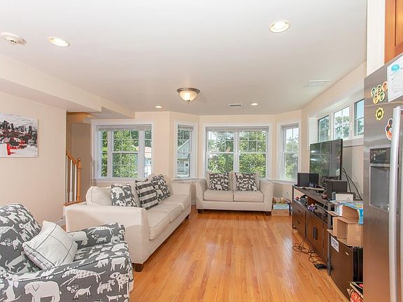 Move right into this beautiful 3 Bedroom, 2.5 Bath Bi-Level Luxury Condo located on the JP/Roslindale border. Boasting 1427 sf of living area, a private deck & balcony. Enjoy the convenience of a commuter friendly location near Jamaica Plain and within 1 mile to the Forest Hills T Station. A spacious living room, gleaming hardwood floors throughout, a multitude of windows allowing for incredible sunshine & opens to a gourmet kitchen w/cherry cabinetry, granite counters/stainless steel appliances, a breakfast bar w/pendant lights & a separate dining area! The floor plan is an ideal layout for entertaining! The master suite can accommodate a king size bed, a large walk-in closet, renovated bath featuring a glass door enclosure & a luxury vanity. Plus 2 well-proportioned guest bedrooms w/ample closets & renovated bath. In-Unit laundry, Central A/C and heating system with NEST Learning Thermostat. Professional landscaping, no special assessment.This unit also has 2 deeded parking spots.