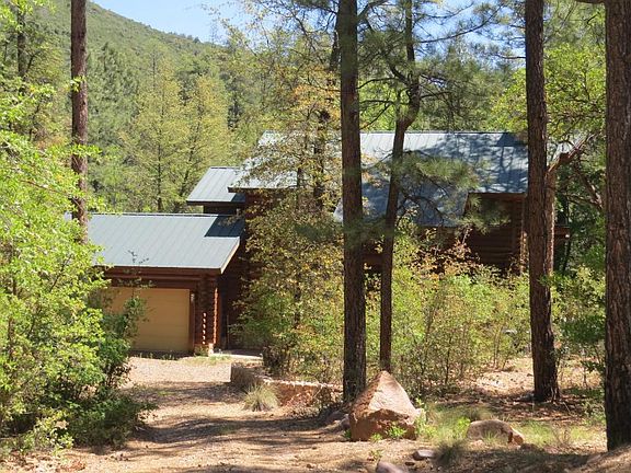 Rose Canyon Ranch. Located between Young and Roosevelt Lake on Hwy 288. Off Grid-Solar with well. Upgrade Septic. 2 story Log Cabin-3 bedroom, 2 bath. Huge stone fireplace. 2156 sq ft. 2 car garage. Several open porches and a covered patio. Has WiFi!! Open living area.Poderosa Pine, Cottonwoods, and Oak Trees. Blackberry bushes-make your own jam. Rose Creek flows through the back of property. Mountain Ferns. This property is like a oasis in the mountains. 5,200'. One could not build this property for what the seller is asking. It's not even close. It's like the land comes free. Elk, Turkey, Mule and Coues Whitetail Deer, Black Bear and other wild creatures are your neighbors. Hunting Unit 23 South. This property is a sanctuary for all types of birds, Turkeys, Hawks, Eagles, Hummingbirds, Bluejays, and numerous other feathered friends. To be only a few hours out of the greater Phoenix area and be in 'God's County' like this, well, this property is very special. Come see for yourself.