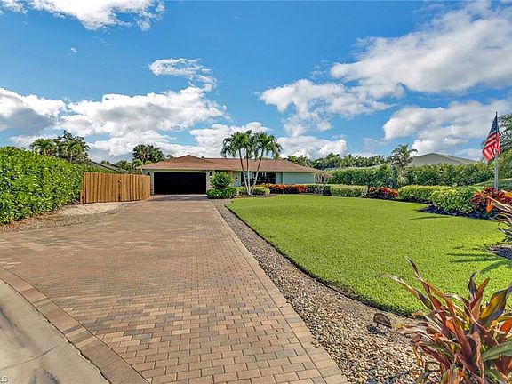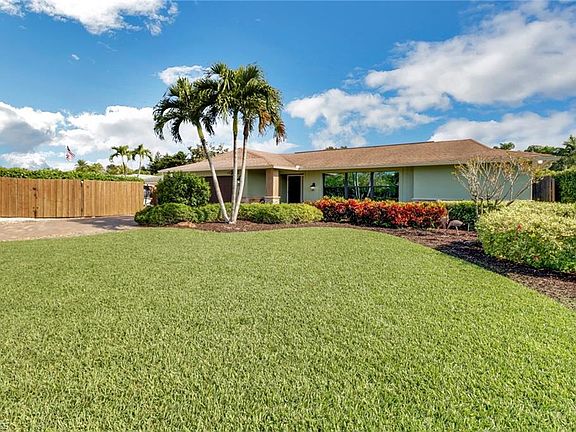 In North Naples' hidden gem, Palm River Estates, find this spacious home in a family-friendly, non-HOA neighborhood. The large cul-de-sac lot has a park-like atmosphere with lush landscaping, irrigated by your new well and pump. Unwind in your private outdoor oasis, strategically designed for privacy, with ample parking on the long paver driveway. Inside, the open and airy floor plan offers multiple living areas, perfect for families and guests. The kitchen features a convenient pass-through window to your oversized outdoor living space. This meticulously maintained home boasts new appliances, impact windows and doors, charming Florida shiplap accents, and a large laundry room with a sink. All this, backing up to the La Playa golf course in the front part of the community, and just minutes from Naples' famous beaches, the hospital, Seed to Table market, parks, and Mercato for world-class entertainment.