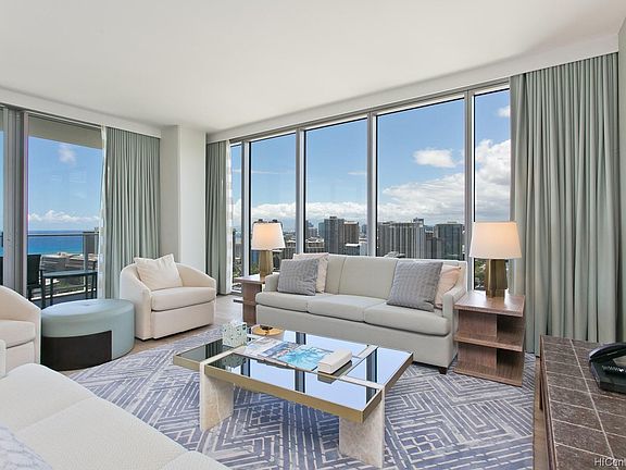 Luxurious and elegant high floor pied-a-terre in the exclusive Ritz-Carlton Waikiki Residences Waikiki. Enjoy panoramic Ocean, Fort DeRussy Park and Mountain views by day and beautiful city lights at night from floor-to-ceiling picture windows or from the privacy of your specious lanai. This preferred corner-end unit comes fully furnished and ready for immediate occupancy. Enjoy world-class amenities such as valet and concierge service, housekeeping, infinity pool, fitness room, spa, and great dining options from La Vie, Quiora, The Lounge, Dean and Deluca and Sushi Sho all located on property.
