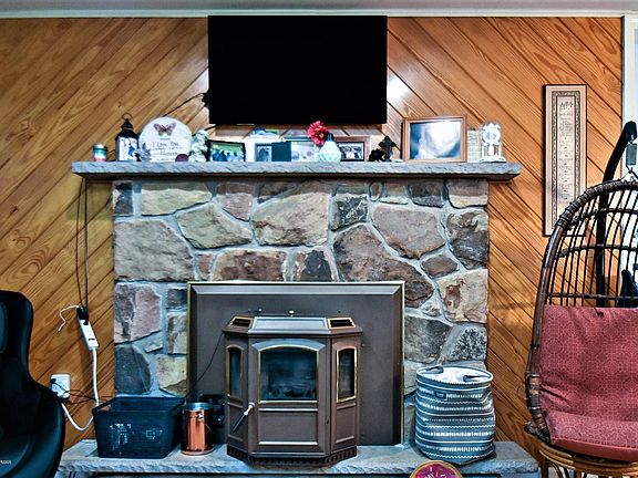 Come and tour this beautiful chalet. Enter this home and find a living room with a lovely brick faced fireplace with insert for warming up during the winter months. This room opens up to the eat in kitchen and dining room. The dining room has vaulted ceilings and is flooded with natural light. On this level you have the spacious master bedroom and a full bath. But there's more. There is an office that can be used for remote learning or working or can serve as a bedroom. A couple of steps down and you access the family room complete with wood ceilings and French doors. Upstairs are two nice sized bedrooms with vaulted ceilings and a bathroom completes this level. This home is located in beautiful Camelot Forest There is a lake with a beach. Relax, go boating and enjoy.