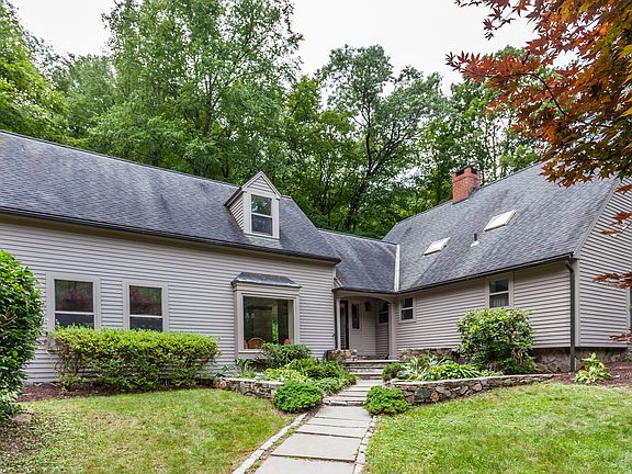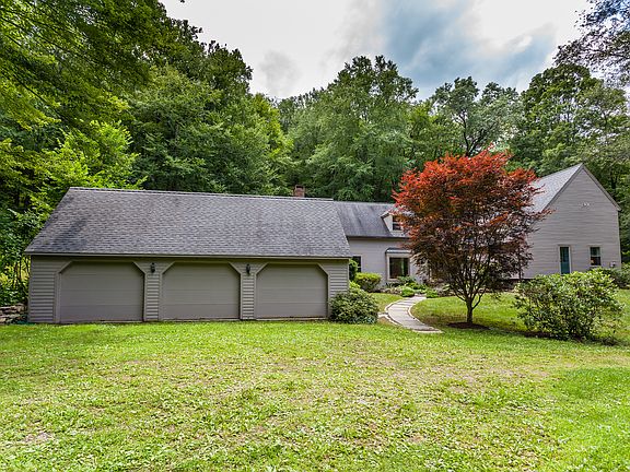 Private get-away! Modified Saltbox on 30 acres with 4 bedrooms and 4 full baths. Den on first floor could be an additional bedroom. There is also a finished sleeping loft. Custom crafted post and beam home with wood floors throughout. Bright living room with fireplace, wet bar and French doors to the flagstone patio. Remodeled kitchen with granite counters and French doors which open to an expanded deck with serene views which is perfect for entertaining or morning coffee and listening to the birds. Partially finished basement with gym/office area and wine cellar which is not included in the square footage. 3 car detached garage. Specimen trees such as copper beach, American elm, sycamore as well as plum, pear and cherry trees dot the property. A brook meanders near by and walking trails.Privacy but within minutes to the Village of New Preston and beach at Lake Waramaug as well as skiing at Mohawk Mountain.