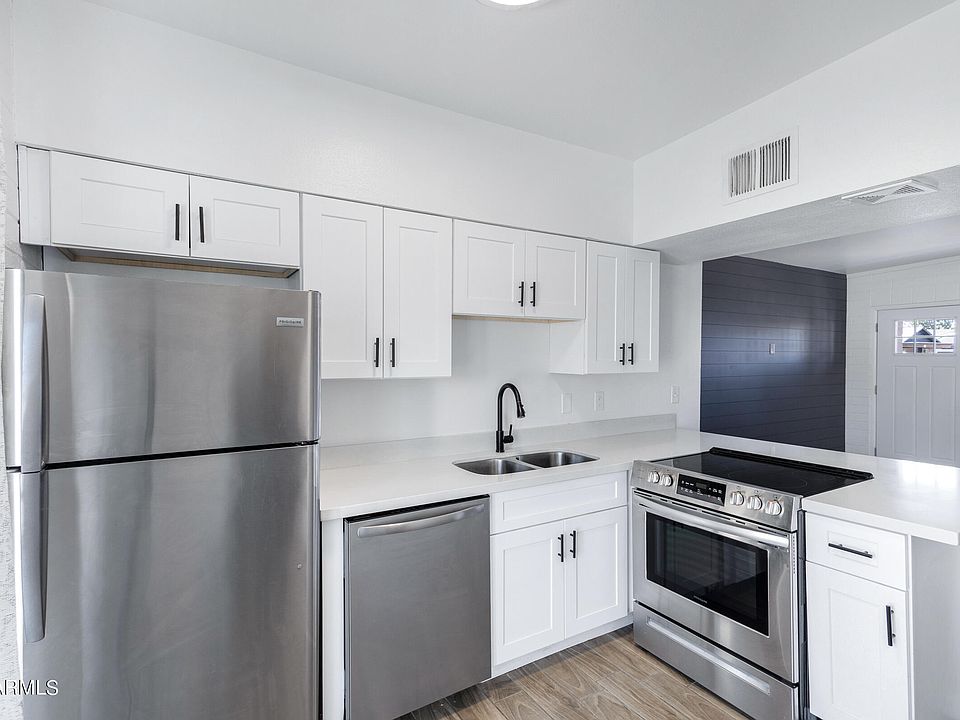 Welcome to your new Chandler home! Minutes away from the dining and entertainment of Downtown Chandler you'll find this charming townhome that has been completely renovated inside. this 2 bedroom, 2 bathroom home features newer Quartz counters, shake cabinets, flooring, stainless steel appliances, and gorgeous tiled bathrooms. Stepping out back you'll find a quaint patio and a view of the newly refinished pool! The size and location makes this a perfect rental opportunity, or lock and leave home for the winter months. A dedicated covered parking space with a storage cabinet also comes with the home. A perfect starter home, or first investment, come see this one today!