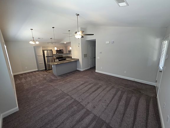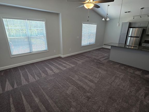 Almost new 2 bedroom 2 bath. Stainless steel appliances to include refrigerator, automatic ice maker, stove with microwave above, dish washer and garbage disposal. Granite countertops. Intrusion alarm. Cathedral ceiling. Ceiling fans in both bedrooms and living room. Custom bath mirrors. Private deck. Tall kitchen sink faucet. Pendant lights over bar. Washer/ dryer connections. Track lighting. Concrete parking. This is an upstairs unit with a private entrance. Good credit is a must. 18 month lease is required. Conveniently located to dining, shopping and retail. Tenant pays water and electric. Landlord mows. 18 month lease is required and good credit is a must.