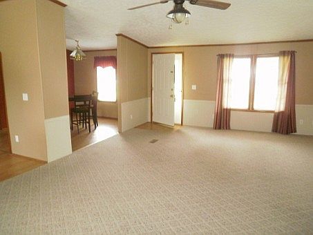 Very clean, very well kept doublewide on an acre of cleared land. Less than a mile from the center of Floyd. Home is on a permanent foundation. There is a 6' x 11' deck on the back of the house with a beautiful view. All appliances were replaced approximately 6 years ago. There is a free standing single car garage with built in shelving for storage. Has town water.