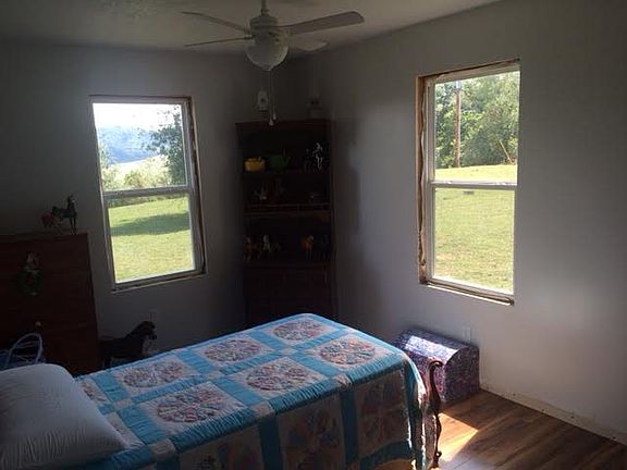 TOTAL SECLUSION on approx. 38 acres of beautiful land with AMAZING MOUNTAIN VIEWS! Approx 15-18 acres OPEN for pasture! One level home finished in 2014 with 3 spacious bedrooms, 2 full baths, great room (open living, dining and kitchen areas), Applewood laminate flooring, custom cabinets in kitchen with soft-close drawers, island in kitchen, granite countertops, stainless appliances, farmhouse sink, covered front porch and rear porch! Perimeter of property is fenced with woven wire/barbed w...