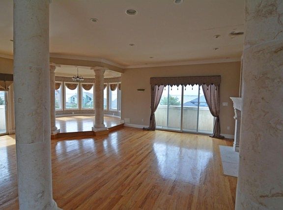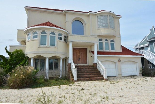 Enjoy amazing water views from this unique custom designed home offering a reverse living arrangement to take advantage of Ocean and Bay views. Open layout includes LR with stone FP, columns and built-ins, a dramatic round DR and a chef's dream of a kitchen with quartz counter tops, center island & Viking and Jennair appliances. Other amenities include spacious master suite w/ tray ceiling, huge walk in closet with stacked W/D and luxurious master bath on the upper level, 4 additional BR's and 2 baths on the 2nd level one with a sauna, and rec room with mini kitchen, 3 BR and full BA, full size W/D and access to the back yard on the 1st level. Perfect for year round living or vacation home where you will enjoy the close proximity of beach and bay.