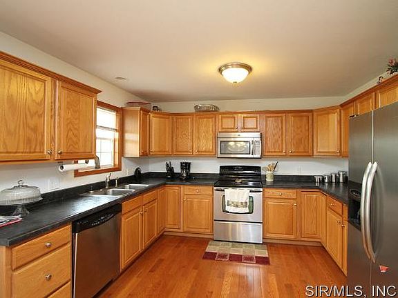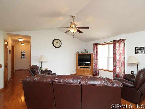 4 Bedroom 3 Bath brick combo home, cul-de-sac on 1.22+/- Acres. Living room has vaulted ceilings. Relax on the 12X14 covered back porch enjoying the 2 apple trees, pin-oak tree and the new Landscaping around the home 2015. Home is freshly painted, seller is installing a 3/4 bath in the lower level. Kitchen has pantry, Built-in stainless steel microwave and dishwasher stay. Master bedroom has tray ceiling, 11.4X5 walk-in closet, master bath has separate soaker tub and shower. 4th bedroom in lower level has 7.9X7.9 walk-in closet. Furnace is 92.1 hi-eff, propane tank is leased, sump pump has battery back-up. Call Wilfred Holzinger at 618-651-1400 to schedule your tour and for more information.