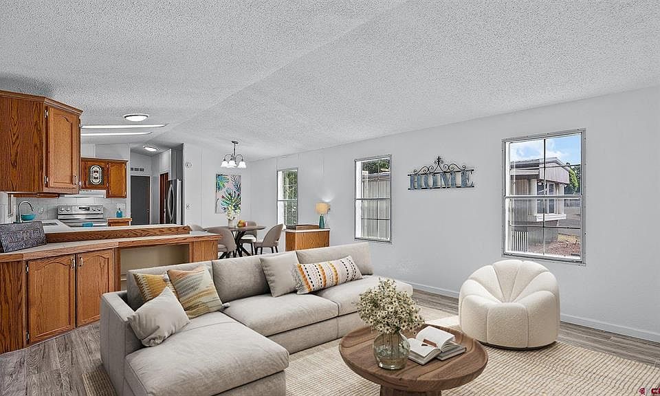 Welcome to your dream home! This beautifully renovated 3-bedroom, 2-bath manufactured home offers modern comfort and style at an affordable price. Featuring brand-new appliances, a new roof, fresh flooring, crisp paint, and sleek countertops, every detail has been thoughtfully updated for a move-in-ready experience. The spacious layout is perfect for or those seeking extra room to spread out. With a five piece bathroom off of the large Primary suite, there is plenty of room to relax. Outside, enjoy a huge covered carport for ample parking and a charming covered patio, ideal for relaxing or entertaining. Situated in a lovely, well-maintained park, this home comes with a low lot rent of $390 per month, which includes water, sewer, and trash services. Don’t miss this opportunity to own a stunning, fully updated home in a welcoming community! Great financing available with approved credit! some photos of this listing may include virtually staged amenities, furniture or fixtures”.