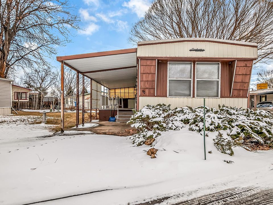 Comfortable, quiet 3 bed, 2 bath home in an adult (18+) park. Walking distance to exercise gym (Golds), walking trails at nearby Cedar View Park, and medical facilities, and several blocks from downtown Montrose. Split bedroom floor plan with primary bedroom located in the back of home, with en suite full bath. Secondary bedrooms located on the opposite end of the home, with a door connecting the second full bath to one bedroom. Lot rent of $390/mo includes water, sewer, irrigation, and trash service. New high efficiency furnace and refrigerator, new evaporative cooler, and hot water heater replaced 4 years ago. Extensive after-market roof and crawl space insulation. Roof fully resealed in 2018. Two 10’x10’ outdoor storage sheds included in the sales price. Some furnishings available to be included. Real Estate is Not included. Potential owners will need to submit an application for approval and pass a background check with Paradise Village. All units are owner occupied as NO rentals are allowed. Flooring allowance of up to $4500 available at closing.