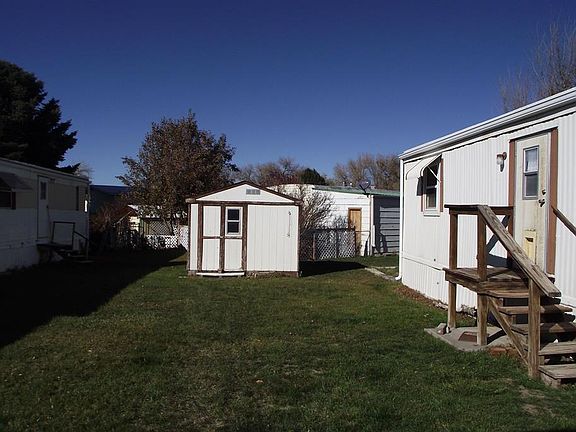 Move in ready! Newer carpet, vinyl double pane windows, large open kitchen with all appliances, 1 1/2 baths, large master suite plus two additional bedrooms, clothes washer and dryer included, covered porch and carport with work area, nice backyard with utility shed, evaporative cooler, NO REAL ESTATE INCLUDED and located in an adult MHP park, Park rent is $380.00 per month and includes water, sewer, trash and irrigation, quiet location and easy access to downtown.