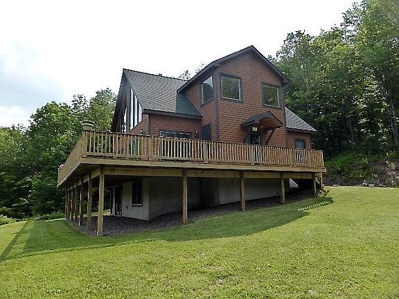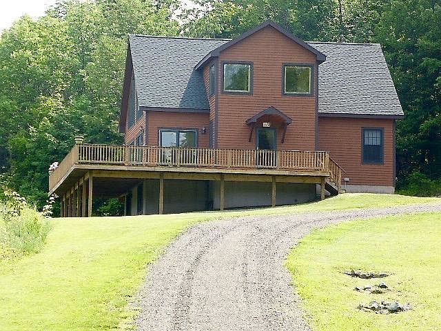 Cedar Sided Contemporary Trifecta in Roxbury NY! 3 BR, 3BA, 3 levels, oh my! You''ll pick a winner when you close on this mint condition chalet perched above the vivacious views of the Denver Vega Valley. The great room is magnificent with an inviting open floor plan, 21'' cathedral ceiling & fabulous oak floors. 4 sets of sliders lead to an 1140 sq.'' wraparound deck where you can fill all your senses with the great outdoors. The kitchen is elegant; granite counters, SS Frigidaire Professional appliances, cafe style breakfast bar & cherry cabinets. The MBR has cherry floors & MBA with a custom Jacuzzi tub surrounded by windows for your serene soaking pleasure! The heated full finished walk out basement has French doors with screens, extra large windows + full BA with solid surface counter & ceramic tile. The property views are stunning & beyond private. This dead end road could be the very beginning of your life! 15 minutes to 2 local ski centers.