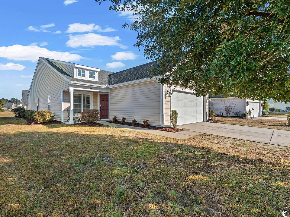 Welcome to this charming 3 bedroom, 2 bathroom home located in the heart of Carolina Forest. This property offers a perfect blend of comfort and convenience, making it an ideal place to call home. With a spacious 2-car garage, new roof, and a view of the water, this home is sure to impress. As you step inside, you’ll be greeted by a bright and airy living space that is perfect for both relaxing and entertaining. The open floor plan and vaulted ceiling seamlessly connects the living room, dining area, and kitchen, creating a welcoming atmosphere for gatherings. The modern kitchen is equipped with stainless steel appliances, French door refrigerator, granite countertops, kitchen island with sink, and a designated pantry. The master bedroom is a true retreat with its generous size, walk-in closet, and en-suite bathroom. The master bathroom features plenty of countertop space, walk in shower, and separate linen closet. The two additional bedrooms are well-appointed and offer flexibility for use as guest rooms, home offices, or hobby spaces. Each room boasts ample natural light and closet space. The laundry room is private and adds additional storage space. Outside, the property features a beautifully landscaped yard that provides the perfect setting for outdoor activities and enjoying the pleasant Myrtle Beach weather. The outdoor patio is covered with a view of the water. The patio offers an additional concrete slab for extended seating or grilling. The 2-car garage offers plenty of space for parking and storage, providing added convenience for homeowners. Situated in Carolina Forest, this home offers easy access to a wide array of amenities and attractions. Residents can enjoy proximity to beautiful beaches, renowned golf courses, shopping centers, dining options, entertainment venues, and more. Additionally, the neighborhood features a community pool and playground. Don’t miss the opportunity to make this exceptional home your own. Schedule a showing today and experience the best of coastal living in Myrtle Beach!