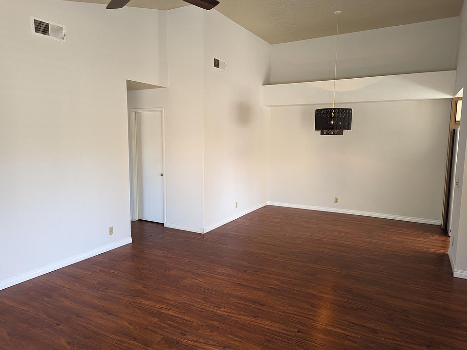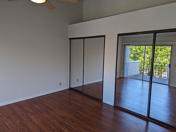 Light, bright, warm and inviting upper level home in the prestigious Princeton Townhome community. Recessed lighting, custom paint, wood flooring. Vaulted ceilings in living room and master. Balcony off master and large entry area patio overlooking the greenbelt. Central air. Corner unit in a prime location, near the pool, spa, sand volleyball court, park, and playground. No neighbor above, your garage below, and only one common wall. Stackable washer and dryer in unit, refrigerator. 1 car, detached garage, one additional parking space pass and 2 guest parking passes. Full use of community facilities. Conveniently located, very close to great schools and shopping centers. 12 month lease, no smoking, additional pet deposit