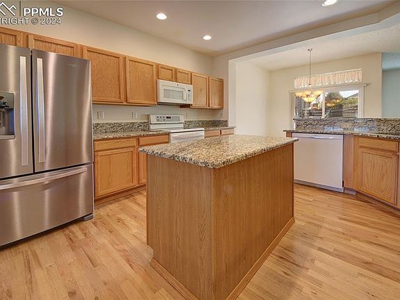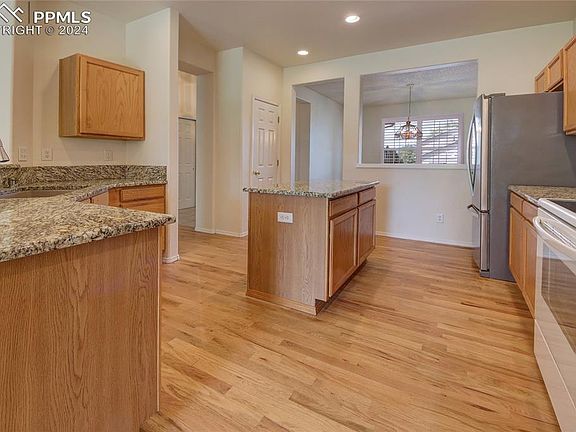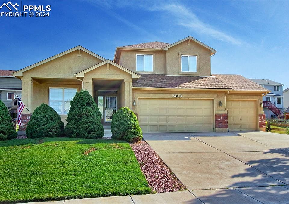 Pride in ownership and functionality will captivate you as you step inside this 6 bedroom Jackson Creek home! Curb appeal begins at the expansive front lot- the front porch sets the tone for enjoying the mountain views and a vibrant green lawn. Open and spacious kitchen area boasting gleaming wood floors, granite counter-tops, kitchen island, a breakfast bar, kitchen pantry & plenty of storage! Choice of two dining areas- enjoy the dining nook just off of the kitchen or the formal dining area. Cozy great room w/ gas fireplace and ceiling fan. The main level primary suite showcases a spacious walk-in closet and a adjoining private deluxe bath. Convenient, main level laundry area (washer and dryer included). Three well appointed bedrooms and a full bathroom to share located on the upper level. Finished basement area w/ large family room and two bedrooms. The automatic sprinklers make yard maintenance a breeze. Fully fenced, spacious backyard w/ a concrete patio for entertaining. Enjoy easy access to a neighborhood park and schools, enhancing the community feel. This home is conveniently located close to shopping, dining, entertainment, schools, parks, trails, businesses, the USAFA, and offers quick access to I-25. Don’t miss the opportunity to make this exceptional property your own.
