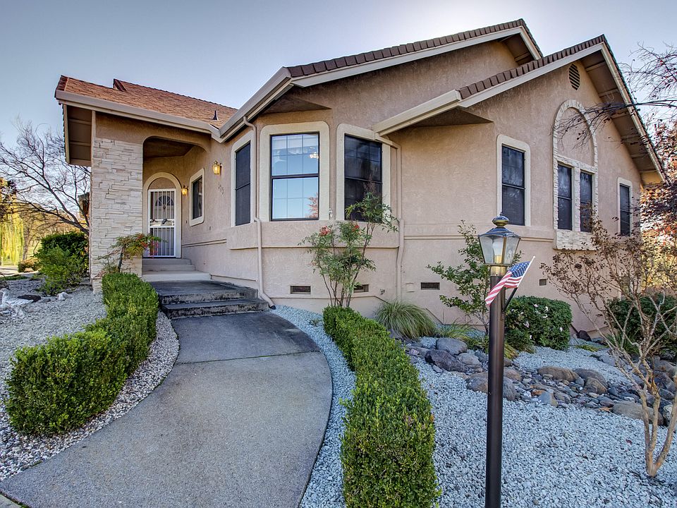 The Vineyard! Redding's premier 55+ retirement community, This stunning 3/2 home even has a 33' X 15.5' finished basement. There is laminate flooring throughout most of the home .Full landscaping front, rear and side, and a covered deck with peaceful views. Enjoy the open floor plan, large living room with a gas fireplace and large built in shelving. The kitchen has plenty of workspace, tile counters and flows nicely. Laundry area is conveniently located in the hallway. Master suite is spacious with extra cabinets, overhead accent lighting and glass slider door to deck. 3rd bedroom would make great office or craft room. Large garage with long driveway, roof is 6 yrs old and newer water heater. Enjoy the community pool, bocce ball and beautiful lakes with walking trails,