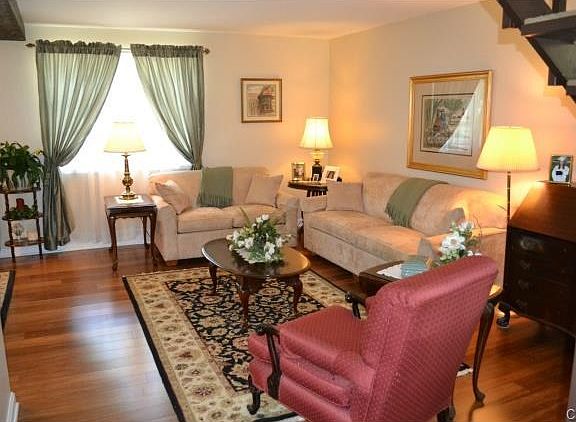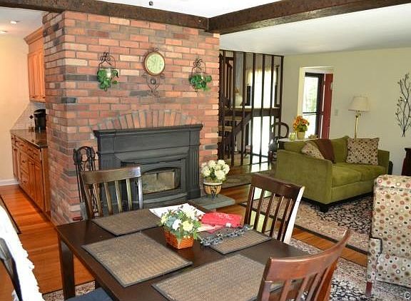 Gorgeous level property surrounds this open floor plan Colonial with a 2 car attached garage. Newer kitchen w/granite counters, double sinks, recessed lights & stone back splash. Bamboo flooring thru-out the first floor. Formal LR and DR. Family room opens to kitchen/dining area with a wood burning fireplace. Double set of sliders to a patio. New half bath. The master bedroom suite includes a wood burning fireplace, new full bath, double closets & sliders to a private balcony. Two guest bedrooms both w/sliders to their own balcony. Newer main bath on this level. Low utilities which includes the electric heat. Features: central/air, newer water pump, newer roof, and some newer windows. City water in the street. Newer large shed for plenty of storage.