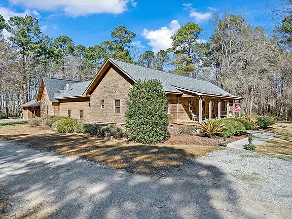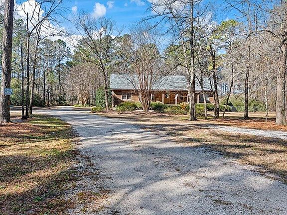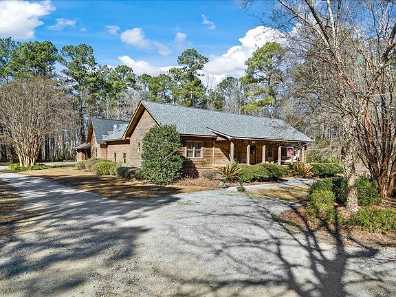 A unique opportunity to own a custom built log cabin in an incredibly private location still close to town. The 2.84 acre property is fenced in for privacy that sits inside undeveloped buffers offering 5 plus acres that cannot be developed. The home is located 5 mins from 1-26, 10 mins from Cane Bay and down town Summerville. In 2014, a mother-in-law suite was added to the home increasing the square footage to 3000 square feet providing 5 bedrooms and 3 baths in total to the home. This addition allows various opportunities for two separate living spaces that can be used as one home or divided to share with a family member or rented out. The interior is all pine wood, vaulted ceilings, carpet in master bedroom as well as two other bedrooms and wood floors everywhere else. In addition to the charm of this cozy interior, the home offers a 2 bay carport and one bay enclosed garage space. The home has a new roof, current termite bond and HVAC units put in 2014. Professional home inspection was completed in August 2022