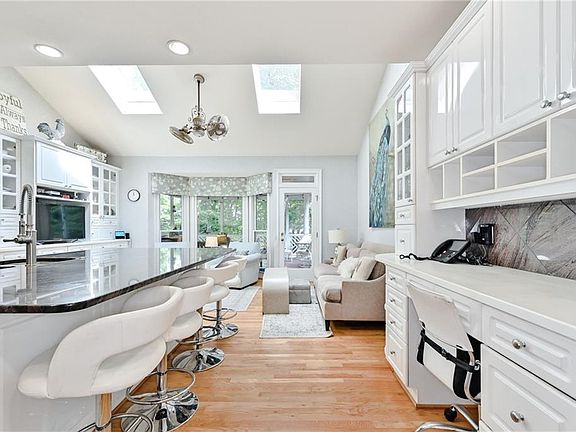 - Kitchen Features: Breakfast Bar, Pantry, Kitchen Island, Breakfast Room, Solid Surface Counters, Keeping Room, Cabinets White