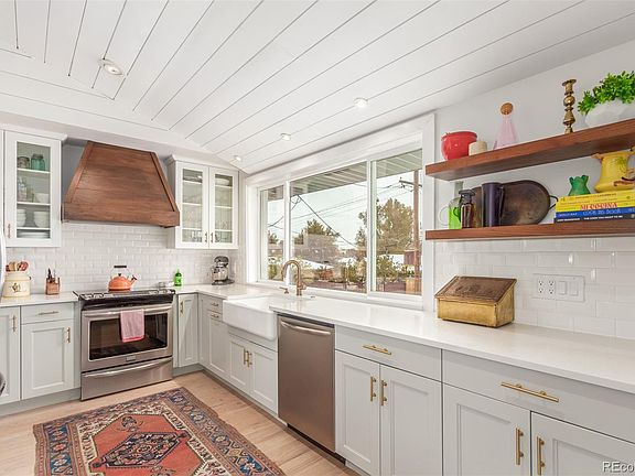 Amazing 1959 Mid-Century ranch style home in the heart of Wheat Ridge with a full finished basement! Light bright, open & airy floor plan with vaulted tongue & groove ceiling. The kitchen & main bathroom have been fully remodeled & seamlessly blend timeless character with modern updates. The kitchen features Quartz counter tops, an undermount single basin farmhouse style sink and stainless-steel appliances. There are a total of three bedrooms & two bathrooms on the main floor. Very cool retro mint tile in the primary bathroom! The basement features numerous flexible spaces for additional bedrooms, offices or entertainment spaces. Ample outdoor spaces, both covered and uncovered for year-round enjoyment. Huge, fenced yard with a gardeners dream setup! All new flooring and trim in the basement. There are owned solar panels which should cover all electricity needs on a year-round basis to help cut costs. Electric vehicle charger in the garage for fast charging at home. A second electrical panel in the garage allows any future changes. New items include: gutters, soffit, facia, basement floors, trim and doors, sewer line, furnace, AC, water heater, fencing, hardscaping, retaining wall and app controlled irrigation system. Short walk to Crown Hill Park. Easy access to Olde Town Arvada, I-70, downtown Golden, Colorado Mills Mall, downtown Denver. Grocery stores and shopping Wadsworth include the new indoor pickle ball court! Short walk to Crown Hill Park. Only 3 miles to the following Light Rail Stations - Olde Town Arvada Station and Lamar Station. Nothing to do but move in enjoy all of the comfort and convenience of this amazing home! Get into this area now and enjoy the equity bump from the new mixed-use neighborhood going in right across the street! The City’s “Lutheran Legacy Campus” plan calls for housing of varied types, small-scale retail and civic space along 38th, plus significant parks and trails, with historic elements like the Blue House and chapel retained.