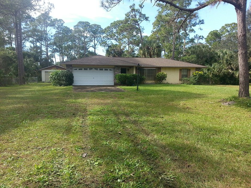 Price Reduced! Country Living in this 3/2 home on almost an acre of land. Less than a mile to “The Habitat” 18 hole public golf course and the Valkaria General Aviation Airport. Property is completely fenced. There is a detached garage in the back yard in addition to an attached double garage. Sold 'as is' - needs updating and a little TLC. Priced to sell now!