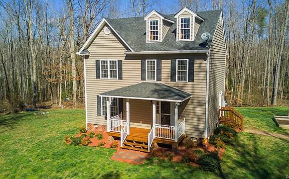 You will love this 3 BR 2.5 Bath Colonial Style home located right near I64 in Goochland County. Priced way under assessed value which buyers will be thrilled about. Maintenance free vinyl siding, long private drive, nestled on 2.5+ acres, and so much more. Interior updated eat in kitchen featuring tiled floors, bay window, granite countertops, stainless steel appliances, pendant lighting, and glass backsplash. Open and inviting family room featuring hardwood floors, ceiling fan, moldings, and gas fireplace with granite surround. Dining room also has hardwood flooring, moldings, and access to rear deck overlooking private rear yard. Upstairs master suite with wall to wall carpeting, ceiling fan, his/her closets and private bath w tiled flooring, granite tops, and newer fixtures. Two other very nicely sized secondary bedrooms with wall to wall carpeting, ceiling fans, and nice closet spacing. Two zoned heatpump (one new), 1st floor laundry, pull down attic for storage, 2 detached storage sheds (1 w electricity & ramp), front porch, side porch, & dont forget about award winning Goochland County Schools. This home is a must see & midway between Richmond & Charlottesville.