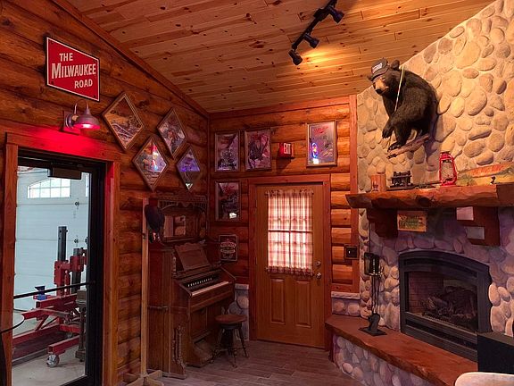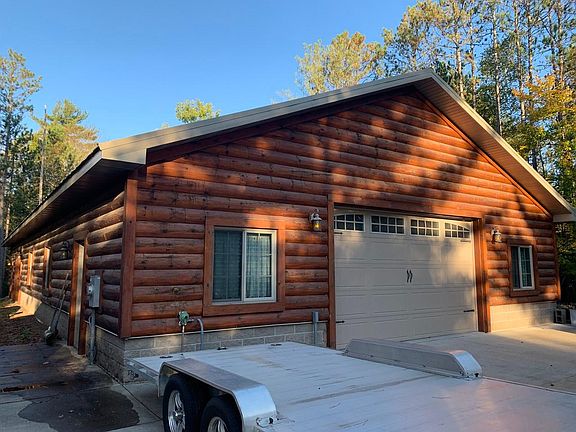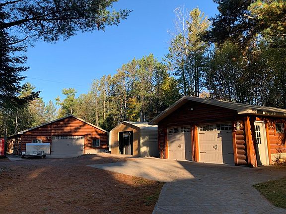 This is definitely not your ordinary lake property as it far exceeds the meaning of custom! Each impressive building is neatly wrapped in 8” hand-hewn log siding accented with beautiful stonework and remarkable pillars! Incredible 40x80 completely finished extraordinary custom-built garage complete with its own septic and well, in-floor heating, cathedral ceiling, the most amazing bar with custom built cabinetry, striking fireplace, full bathroom, all electric in conduit, and SO much more! Additional finished interior 2 car garage, a covered woodshed and lakeside storage/sauna house. The home features custom built kitchen cabinets, stunning cathedral great room with massive fireplace, lakeside hot tub room, walk out basement, full wrap around deck with log railing, fully automatic generator & central air. All this sits on an incredible 2+ acre parcel offering spectacular level frontage on Wilson Lake!