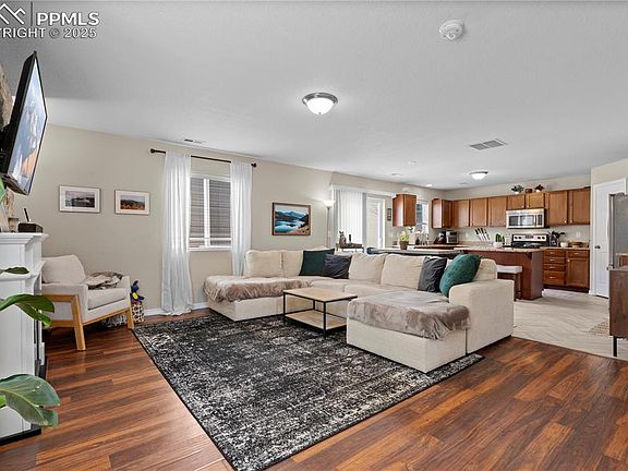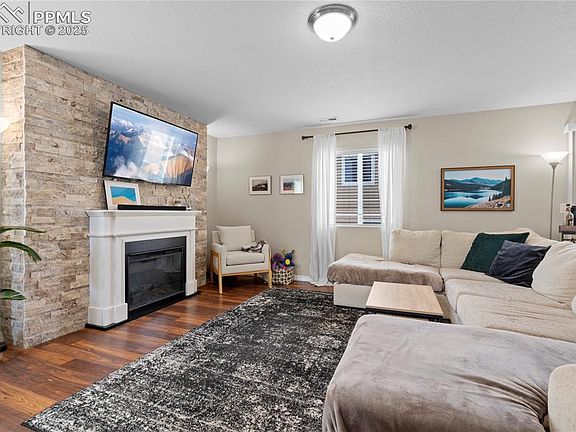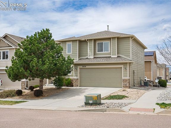 Welcome home to this beautiful two-story gem offering 3 bedrooms, 3 bathrooms, and a 2-car garage. Built in 2012 and thoughtfully enhanced with custom post-construction upgrades, this home blends comfort, style, and functionality. Ideally located just minutes from shopping, dining, schools, military installations, and scenic hiking trails, you’ll enjoy breathtaking Pikes Peak views right from your neighborhood. Step inside from the meticulously landscaped front yard and covered porch to find a vaulted ceiling and large window flooding the home with natural light, creating a warm and airy atmosphere. The spacious living room, complete with a custom masonry gas fireplace, opens to the dining area and walkout to a charming back patio. The gourmet eat-in kitchen boasts granite countertops, stainless steel appliances, a walk-in pantry, a large island, and plenty of storage. A beautifully renovated half bath and smartly designed under-stair storage round out the main floor. Upstairs, the tranquil primary suite features a private sitting area or office nook, en-suite bath with a marble double vanity, and a walk-in closet. Two additional bedrooms, a full bath, and a convenient laundry room complete the upper level. With thoughtful updates, timeless finishes, and a location that offers both convenience and adventure, this home is ready to welcome its next chapter—could it be yours?