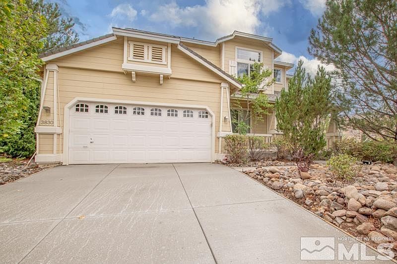Sweeping mountain views at this updated 4 bed 2.5 bath home in Vista Pointe. Easy access to the McCarran loop and walking trails Caughlin Ranch in known for. The light & bright kitchen boasts granite countertops, tasteful tile flooring, drop pendant lighting and tile backsplash. The hardwood floors add rich color to the warm color palette. There's a 3 sided fireplace that accents the living and dining room beautifully. The bathrooms have been updated tastefully with tile backsplash and granite countertops., Enjoy the mountain views from your backyard or the balcony off the main bedroom. A brand new HVAC system was installed recently along with the brand new driveway. Updated light fixtures throughout the home. The Vista Pointe HOA includes a swimming pool and tennis courts along with the common area maintenance for the beautiful greenery Caughlin Ranch has to offer.