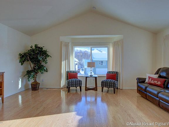 Unbelieveable quality in this custom home! Solid Oak hardwood floors, granite countertops, all bathrooms, kitchen & entry are tile. Stainless steel appliances. Deck off the dining room for BBQ'ing. Large open living room w/ fireplace, has an additional side window & a bay window for maximum light. Big backyard w/ southwest exposure. Mountain Views. Great location near JBER, schools & hospitals.