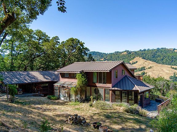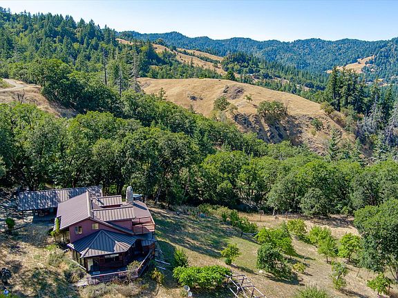 This incredible property offers a lifestyle on over 30 acres of rolling hills with inspiring panoramic views of the Salmon River Valley. Embrace nature's beauty with wonderful sun exposure for gardening and homesteading. The vast land is perfect for horses and animals, making it a haven for nature enthusiasts. Explore the estate to find fruit trees, grape vines, berries, and more. Inside, a masterpiece awaits: a custom-built fireplace by renowned mason George McDavitt, redwood siding, and a sturdy metal roof add durability and timeless charm. Sustainability takes center stage with an innovative designed solar/hydro energy system. A separate propane generator ensures a seamless power supply. This idyllic sanctuary offers tranquility, sustainability, and natural beauty. Experience the magic Green thumbs will love the electric-fenced vegetable garden for year-round produce. Abundant storage with additional outbuildings, artisan springs year-round flowing for fresh water enhance the appeal. There is even a well! Equipped with a grandiose shop, carport, and straw bale cabin, it caters to hobbies and guests.