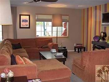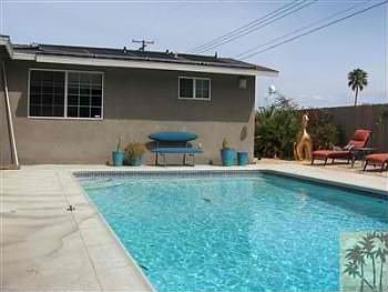 MAJOR PRICE REDUCTION. This delightful Cathedral City Cove home has 3 BRs and 2 Baths in the main home plus a 3 room attached casita. The bedrooms in the main home have just been painted and desert plants added to the front yard. The blue door entry leads into the great room consisting of living room, dining area, breakfast nook, and updated kitchen. Kitchen updates include custom cabinets, counters and newer appliances. The expanded master suite, with its own AC system, features a large walk in closet, master bath with double vanities, custom tiles and walk in shower. The casita has an outside entrance,its own AC/heat, water heater and 3/4 bath with new linoleum tiles. Backyard features include solar heated saltwater pool, large covered patio, conversation area, sunning deck and outside shower. The covered front patio provides additional entertaining/living space. Offered turnkey furnished, with few exceptions-dont miss this great opportunity in the Cove