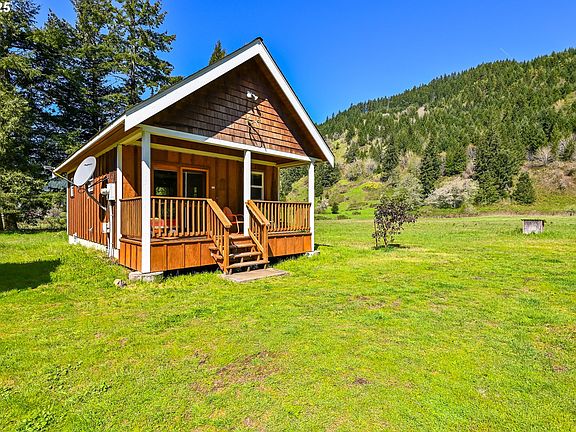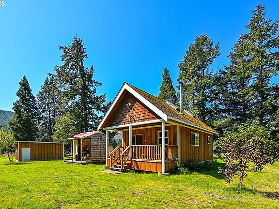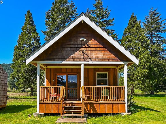 Check out this hidden gem — cute enough to be a private retreat, and with property big enough for all your dreams! Tucked away in the stunning Row River Valley, this rustic 468 SF cabin (with extra loft space) is a total charmer, situated in a grove of fir trees with a wide front porch that is only missing a rocking chair and you. Custom built in 2012 and with brand new Milgard windows in 2025, this home is the perfect getaway - the wood stove provides cozy heat, and there’s plenty of room to stretch out and explore on just over 21 sprawling acres. The land is prime bottom land soil with great solar exposure, so you could grow anything your heart desires! Just 16 miles from Cottage Grove and close to Dorena Lake, this home exudes peace and tranquility. And the cabin is just the beginning - there’s so much more to love! The "Fire Department" is fitted with a 4,000-gallon tank, fire pump, and fire hoses (talk about peace of mind), there is a 170 SF studio complete with solar lighting, propane heat, a sink, a deck and windows that’s perfect for an office or workshop, a solar-powered well with its own well-house, and a shipping container turned tractor shed. Other highlights include public water, underground electric and an oversized septic system designed for a 3-bedroom 2-bath home. Plus a private, gated drive that maintains your privacy. The Oregon State Covered Bridges Scenic Bikeway Trail runs nearby for those morning bike rides. With land use laws getting tighter every year, a property like this is a rare and special find. Call your agent to schedule a showing — it’s too gorgeous to miss!