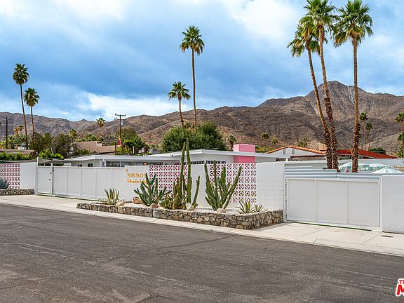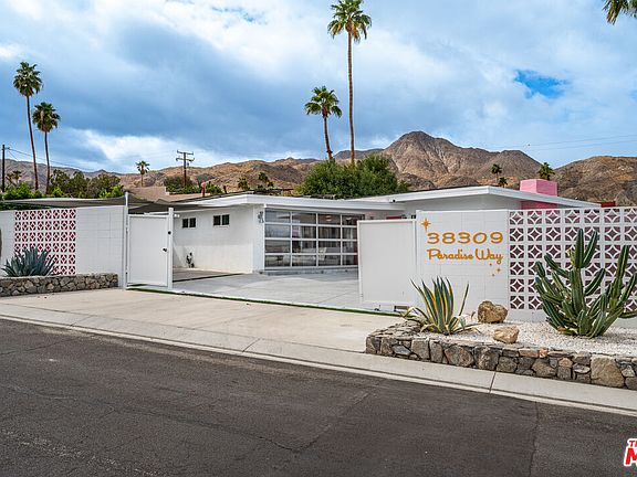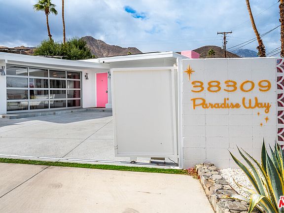 Mid-Century Enthusiast, Take Note! Discover this remarkable Mid-Century gem nestled high in the sought-after Cathedral City Cove, a vibrant and welcoming community where friendly neighbors greet you on your morning walks. Prepare to be transported back to c1960 in this meticulously curated home, featuring state-of-the-art 1960s appliances, fixtures, and decor with an original Frigidaire Flair oven (the same one in Bewitched) and GE Fridge with Lazy Susan pullout shelves. This Mid-Century gem boasts breathtaking mountain and valley views, offering stunning desert sunsets right from your newly installed pool, hot tub, kitchen, great room, and the charming original back yard guest casita. Enjoy peace of mind with modern upgrades including a new roof, electrical panel, solar panels, Tesla backup batteries, fast charge EV plugin and RV parking with sewer connection. Perfectly situated between South Palm Springs and Rancho Mirage, you're just minutes away from world-class restaurants, unique shops, scenic hiking trails, and endless entertainment. Don't miss the opportunity to own a piece of mid-century history in this coveted location!