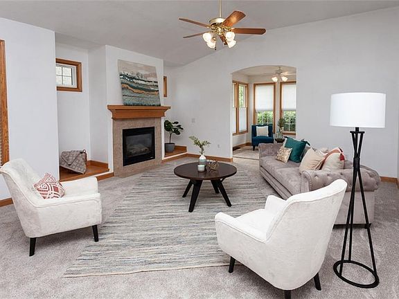 Relax and let someone else deal with the mowing and snow removal! Beautiful turnkey stand-alone 2BR townhome in the sought after Timberline Cottages! The inviting front entry welcomes you to the open floor plan with vaulted living room w/fireplace, dining area, sunroom that leads to private outside patio area,and large eat-in kitchen. The spacious master bedroom has a handicap accessible bathroom that could easily be converted back if not needed. The second bedroom is near the 2nd full bath. Large gorgeous windows throughout that give lots of natural light. New carpet and fresh paint throughout! Unfinished basement area is perfect for storage or finish it off to add a 3rd bedroom and bathroom. Radon mitigation system installed. Great location off Douglas just west of I-35/80 exit.