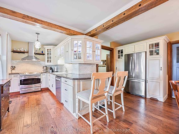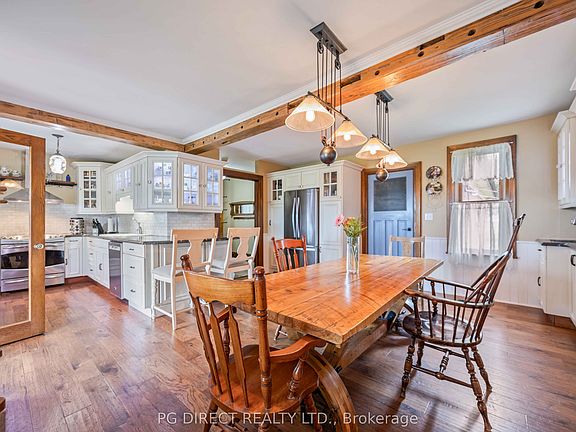 Visit REALTOR website for additional information. Welcome to the Edgerton House circa 1840! Lots of charm & history combined w many modern conveniences. Gorgeous 3.95 acre country property w barn (122'x60') & heated shop (60'x35'). Located just 15 mins E of Port Perry w easy access to Hwy407 for commuters. Well maintained, nicely landscaped w lawns, mature trees & great views. Potential for contractors, landscapers, hobbyist, market gardening, storage income opportunities etc. Spacious eat-in country kitchen w granite counters, backsplash, breakfast bar, pantry, exposed wood beams, laminate flooring & SS appliances. 3 season sunroom w lots of windows. Living room w original pine floors & parlour w hardwood. Renovated 3 pc bath w clawfoot tub on main level. 2 staircases to 2nd level. 5 BR's. Updated 3 pc bath w glass shower & laundry facilities. Efficient Geothermal heating & cooling.
