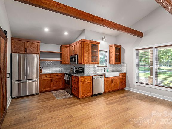 Pleased to offer up this fabulous farmhouse sitting on over 5 acres with functionality and hobby farm in mind! Here you will find a 3 bedroom 2 bath, one level living with all of the farmhouse features you have come to expect like REAL wood cabinets, wood BEAMS, BARN DOORS, a fireplace that looks like an old wood stove (propane) and white washed with natural elements woven through. This property is move-in ready both for you and your animals as it also include a barn that sits inside an approx 2 acre fenced pasture. A 2 car carport will keep your cars from the elements and the firepit will keep you warm this winter! The 20x30 barn with 10x30 lean-tos on each side is wired, has running water and is ready to house your tractor, atvs or space to tinker on your next project. Trees surround the property creating privacy and serenity. You will find you are only 20 minutes from Hickory or Lincolnton as well. Its not everyday you can find a property that has it all! Check this one out!