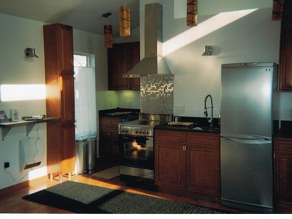 Modern, quiet, clean, private, light filled free standing 1 BR house in Fremont walking distance to everything. Beautiful hardwood floors, honed granite counters, 2nd floor deck off of open concept living room kitchen. Spacious bedroom and bathroom area on first floor. Off street parking. The house is located on a quiet road with no traffic. The house is newer construction and heating bills are low. Owner pays Water Sewer Garbage. Renter pays Electric bill, which is heat. Renter pays cable, internet, phone etc.