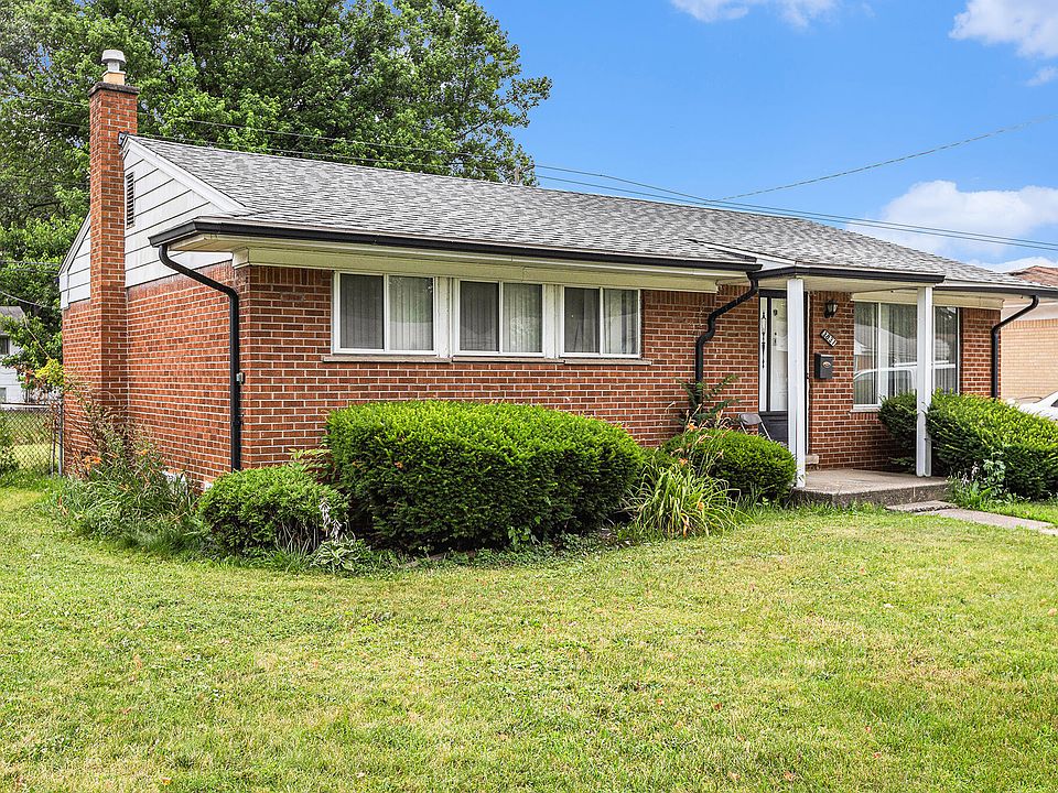 Nice warm 3 bedroom 1 bath, ranch brick home with central A/C and a 2 car garage. Spacious basement for additional storage. Large backyard, and area for outside entertainment or grilling. Washer, range, microwave. Subject to probate approval. Property sold as is.