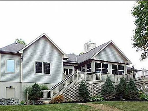 Custom built 3 Bedroom, 2 Full Bath and 2 Half Bath home. Located on 2.3 wooded acres, overlooking Zanesfield Valley. Dining room, eat-in kitchen with Birdseye Maple custom cabinetry, solid surface counter-tops, and slate appliances. Living room has vented gas fireplace, sunroom with cedar walls, jack-and-jill bathroom, office, large master suite with sitting area and hard wood flooring,. The finished walk out basement has 1500 SF, a large recreation room, second kitchen with custom cabinetry (appliances included). bedroom, 1/2 bath, and abundant storage. Exterior amenities include blacktop driveway, 3 car attached garage, multiple deck spaces, and a wonderful wooded view. Backup/secondary heat source is electric baseboard. Sunsetter awning and new tankless hot water.