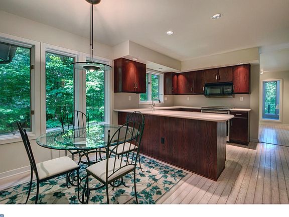 Welcome to "Hedge Row at Windy Bush". From the moment you turn on to the winding driveway, you'll feel just how special this property is, with professionally landscaped grounds, mature trees, native plants and accent lighting. As you enter the home, your eyes are drawn to the massive stone fireplace and vaulted ceilings. The back of the home consist of walls of glass that fill the space with natural light. The two-story solarium is perfect for someone with a green thumb. The kitchen is a dream with a Sub-zero built-in refrigerator, new induction stovetop/double oven, new dishwasher, extra large counter space and sleek cherry wood cabinets. Finishing the 1st floor are an office with built in book shelves, a full bath and bedroom. Upstairs on one side of "the bridge" is a bedroom with a full bath. On the other side is the Master bedroom with a balcony over the solarium. The Master bath consists of three rooms, a large whirlpool tub, a new four by five foot glass and tile-walled shower and a double sink vanity. Off the Master bath, is a large walk-thru cedar-walled closet with shelves and cabinets leading to an extra room, currently used as a music studio, with built in cabinets, desks and additional storage. The lower level has a large room with a gas fire place and built-in wine fridge. On this level is a separate room with a custom-cabinet kitchenette containing a Fridge, stove top, microwave, sink and dishwasher. Attached to this room is a full bath with a large tiled steam shower. Also on this level is a fully shelved storage area that runs the length of the home. From every level step thru the glass sliders and enjoy the views from the full length two-level Trex decks. This is truly the adult version of a luxurious "Tree House". Over $350,000 of renovations have been made in the last 15 years, including a whole house generator, heated rain gutters, security system with cameras, a $16,000 heating and air conditioning system (installed in 2020) and more. The location is perfect, midway between Philadelphia and New York City, and only a quarter mile walk to the beautiful towns of New Hope and Lambertville, where you'll find art galleries, Bucks County Play House and upscale shops and restaurants.