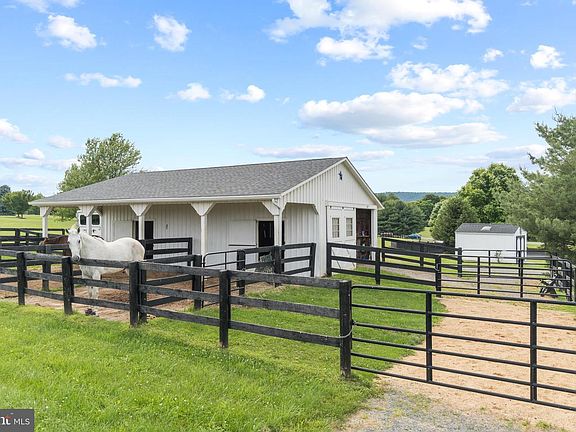 Meticulously maintained 5 Bedroom 5.5 bath home in the countryside minutes from Purcellville, VA. Enjoy the views and the gentle breeze off the Short Hill Mountains from your front porch. Just under 5 acres of land with mature River Birch's and Maple Trees creating privacy while still being part of a neighborhood. A great floor plan with over 5000 sq ft of finished space on 3 levels . Main level Bedroom with a private full bath for in-laws or guests plus an office with high speed Comcast Internet. The gourmet kitchen has a welcoming table space, additional island seating, double ovens, gas cooktop with downdraft, a coffee bar and a large window looking out over the back yard. A screened in back patio just off the kitchen and additional large outside deck for grilling out. Large formal dining room with hardwood flooring . Spacious laundry /mud room carefully thought out with cubbies, storage cabinets, wash sink, and a laundry chute from second level. On the upper level is the owners suite with vaulted ceilings and amazing countryside views. A relaxing spa bath with tub and separate shower- separate vanities and a large closet with custom closet drawers. The lower level is fully finished with a sizeable bar, a full sized refrigerator, dishwasher, microwave and bar TV- all perfect for entertaining. The rec room has a gas fireplace and rec room area and a full bath. Additional bonus/ hobby room and 2 big storage areas in 2 crawl spaces. Extra wide walk-up steps from the lower level to the back yard. 3 car side load garage. Horse amenities with Arena and Barn. Location cannot be beat with easy access paved roads. Grocers and dining out just minutes away in the town of Purcellville. Enjoy the all weather 80 x 200 riding Arena with French drains. A barn with two in and out oversized (12 x 16) stalls, walk-out paddocks and a dry lot. Plus a storage shed for hay etc. Mature landscape and extensive 3 board fencing. This home is move in ready- just bring your horses and enjoy! New Roof 2020, New exterior and interior paint. Impeccably maintained and NO HOA!