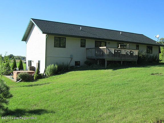 RURAL PERHAM-VERGAS-DENT HOME ON 9 ACRES! Rambler/Walk-out with 3+ bedrooms, 3 baths, owner's suite and bath, vaulted pine ceiling, gas fireplace, heat pump, main floor laundry, patio door to backyard deck, partially finished lower level and 2-stall attached garage. Check out the new flooring on the main floor. Perfect acreage for horses and only 8 miles to town on blacktop!