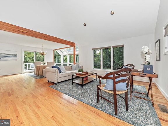 Nestled on a serene 1.61-acre lot in the lush landscapes of Purcellville, this distinctive post and beam crafted by Acorn Deck House Company, a custom home builder in Acton, MA, merges rustic charm with contemporary comfort. Featuring 4 bedrooms, 3.5 bathrooms, and bespoke amenities, this property is a sanctuary of peace and privacy tailored for luxurious living. The interior showcases natural hand hewn woodwork trim and vaulted ceilings with exposed beams throughout both the main and upper levels, creating a spacious and inviting ambiance. The main level features a living room with hardwood floors, floor-to-ceiling windows that bathe the space in natural light, and a two-story ceiling that adds to the open feel. Adjacent to the living room, the dining room also features floor to ceiling atrium windows and hardwood floors. The kitchen is well-equipped with stainless steel appliances, a high-end Fisher & Paykel refrigerator, a breakfast bar, and hardwood floors, which lead into the family room. This cozy space includes a fireplace and provides access to the outdoor deck, perfect for relaxation or entertaining. The upper level includes four bedrooms, all with hardwood floors and vaulted ceilings that enhance the airy feel of each room. The primary suite offers a luxurious retreat with its own attached bathroom featuring tiled floors and a high-end Toto toilet. The additional bedrooms share access to a full bathroom located in the hallway. Additionally, a quaint loft area on the upper level serves as an ideal spot for a reading nook, providing a quiet and secluded space perfect for unwinding with a book. The lower level of the home features a kitchenette area with tiled floors, a full-size refrigerator, and an additional family room. There is also a large home office and a recreation room with hardwood floors and walk-out access to the backyard. The private fully fenced in yard is an outdoor oasis, extensively landscaped and surrounded by mature trees that ensure privacy. It includes a shed with a living roof, a gardening shed, a firepit area, and a large patio space ideal for gatherings. The property and surrounding area hosts abundant wildlife and is a haven for nature lovers, with wild berries like wineberries and mulberries growing all around. Recent updates to the property include a new roof (2020), a newer attic fan, advanced Carrier Infinity HVAC systems (installed in 2018 and 2019), and a new attic air handler with programmable thermostat that can be controlled via a mobile device app (installed in May 2024), ensuring modern comfort and efficiency. All systems have been serviced twice a year by Climatic Heating and Cooling. Close to renowned vineyards and local artisanal offerings, this home is perfect for those seeking a tranquil lifestyle with a touch of elegance and a strong connection to the natural surroundings.