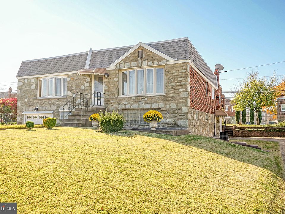 Meticulously maintained brick & stone-front twin rancher, situated on a quiet block in Torresdale. Enter to find beautifully exposed parquet hardwood floors and neutral paint throughout. The main living area offers a spacious living room with bow window that provides an array of natural light, formal dining area with nice chandelier and updated, eat-in-kitchen with hardwood laminate floors, an abundance of cabinets & counter space with ceramic tiled backsplash, gas range and refrigerator that is included. The rear of the main level offers 3 spacious bedrooms, all with plenty of closet space, and an updated 3-piece ceramic tile bathroom with beautifully tiled surround, shower/soaking tub combo, and pedestal sink . The lower level has a huge finished basement that is being used as an awesome family room with separate office area and leads to a nicely tiled powder room, large laundry room with newer cabinets that is also used as a summer kitchen with electric range, cabinets/pantry, freezer and interior access to the 1-car garage with electric opener and exits to the driveway and fenced, rear yard with pavered patio & storage shed. Additional features are new roof, central air, updated electric, replacement windows and the list could go on. This home has been well cared for and is clearly evident. Will not disappoint.