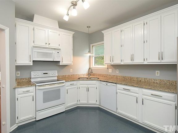 Adorable end unit in popular Carnegie Park! Two bedrooms on main with master suite and loft upstairs! Large open floorplan with vaulted ceilings, gas fireplace in family room, granite counter tops in kitchen, hardwood flooring! Master suite includes double sinks, skylight, walk-in shower, garden tub and walk-in closet! Private deck over looks wooded area! Convenient location to 440, 40, downtown, Crabtree and the airport! Hurry, this won't last long!!