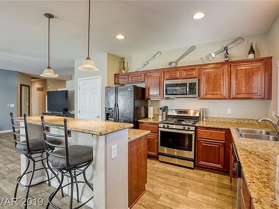Stunning single story home w/ a 3 car garage, spacious backyard w/ a covered patio & gorgeous landscaping. LOTS of great features - beautiful open floor plan, chefs dream kitchen w/ granite counter tops, island w/ breakfast bar, pantry, designer like fixtures. Grand master suite w/ huge tub & separate shower & double sink vanity. MOVE in READY! Close by Desert Horizons & Craig Ranch Regional Park!